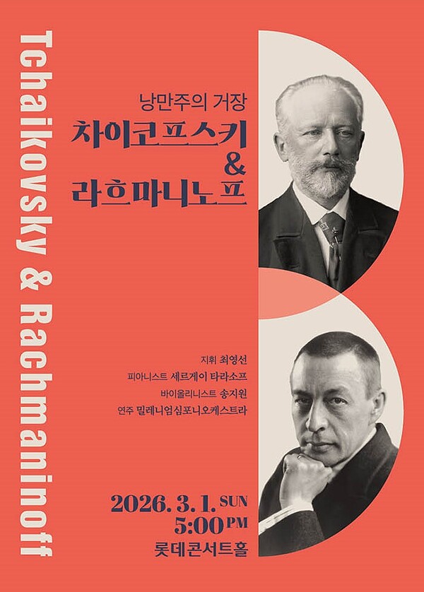 1 March 2026 낭만주의 거장 - 차이코프스키 & 라흐마니노프 Time 5:00 PM Venue 롯데콘서트홀 Program Tchaikovsky violin concerto More Information Calendar